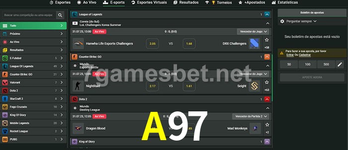 A aposta A97 oferece aos jogadores a experiência mais conveniente de apostas em eSports!